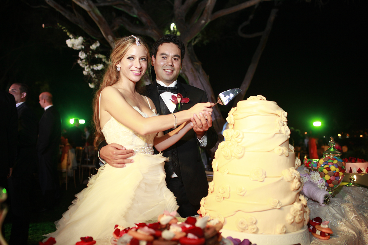 The cake was a fake, except for the top where Diego and I cut and ate delicious red velvet cake, our favorite! |